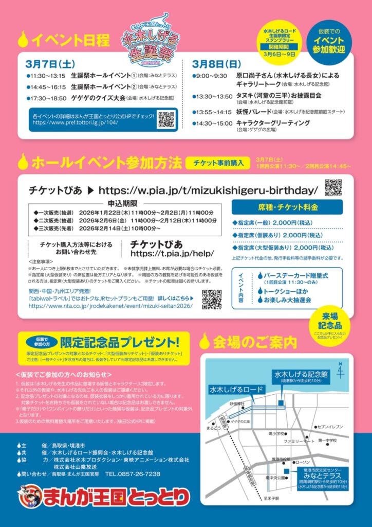 2026年3月7日(土)・8日(日)、鳥取県境港市にて「生誕104年 水木しげる生誕祭」が開催されます。 この度、株式会社エムアンドエムドットコーは、本イベントの運営管理および進行ディレクションを担当。 水木先生の生誕を祝う特別な2日間が、最高に盛り上がるよう準備を進めています。