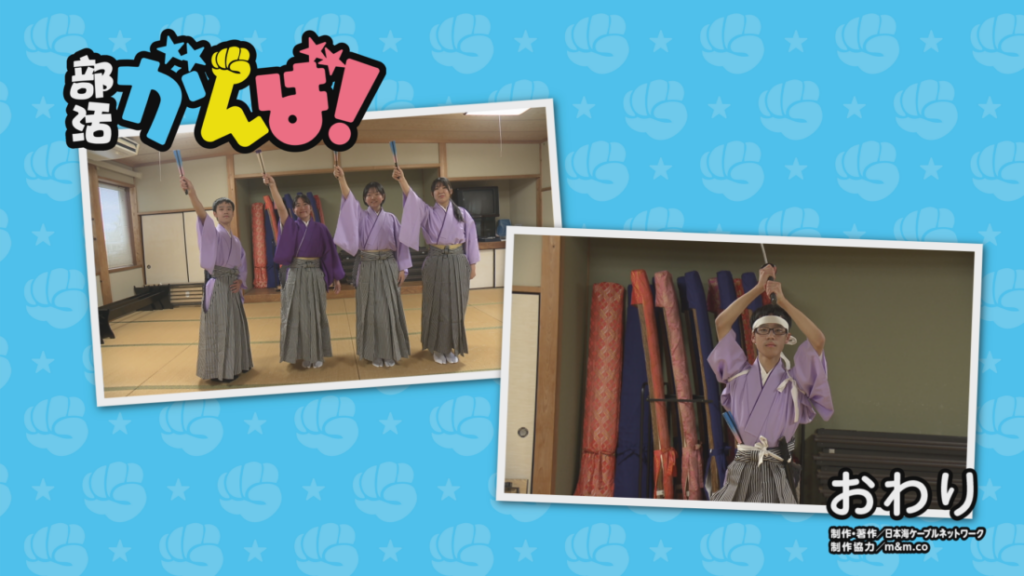 例えば、集合カットでは全員でポーズを決めるシーンを挿入し、チームの一体感を演出。また、武道の紹介では袴姿の凛とした佇まいや、刀を構える所作の美しさを際立たせるなど、競技ごとの「かっこよさ」にこだわりました。 番組の最後には、エンドカードとして「おわり」の文字とともに、撮影に協力してくれた学生たちのベストショットを配置。地域の方々が「自分の街の子供たちが頑張っている」と実感し、親近感を持てるような温かい構成を心がけています。